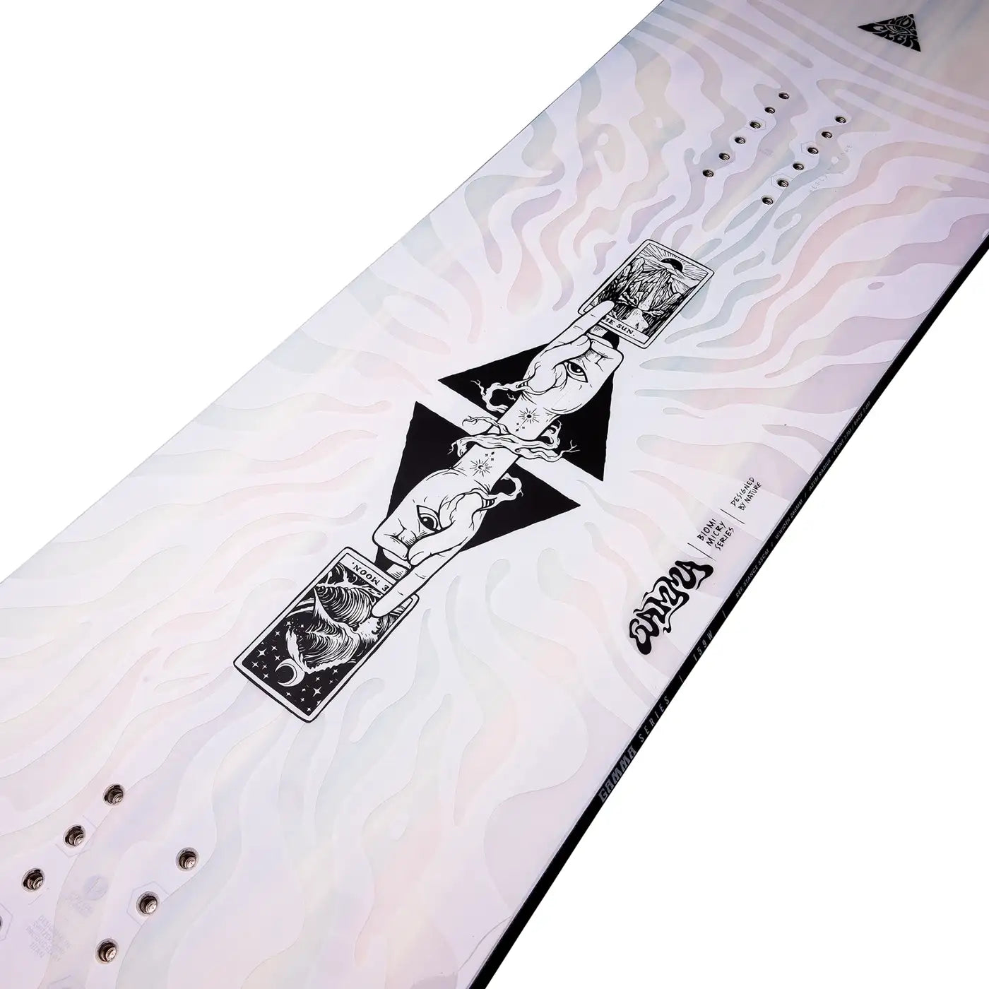 Gammaはスノーボードデザインの進化に新たな章を開く。有機的なフォルムにインスパイアされた非対称ツインシェイプは、非常識なターンとフリースタイルに適した創造性を融合させている。ヒールサイドのタイトなサイドカットが、どちらのエッジでも同じようにカービングを可能にし、ノーズとテールの3Dスプーニングが両方向に非現実的なフローを生み出す。パウダーから飛び出し、スラッシーなサイドヒットを破壊し、パークを超えたトリックを繰り出そう。すべては自然なバランス。
